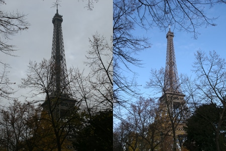Pour exemple, vendredi matin, étant logée près de la Tour Eifel, je décide d’aller photographier la grande Dame de fer, mais il fait gris. J’émets l’intention de la photographier sous le ciel bleu avant mon départ le lundi. Je visualise ce ciel tout bleu et lui rappelle combien je l’aime lorsqu’il est d’un bleu pur…